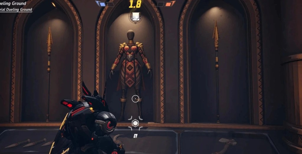 - Inside the Warrior Falls spawn room, search for a statue of Okoye wearing her iconic armor.