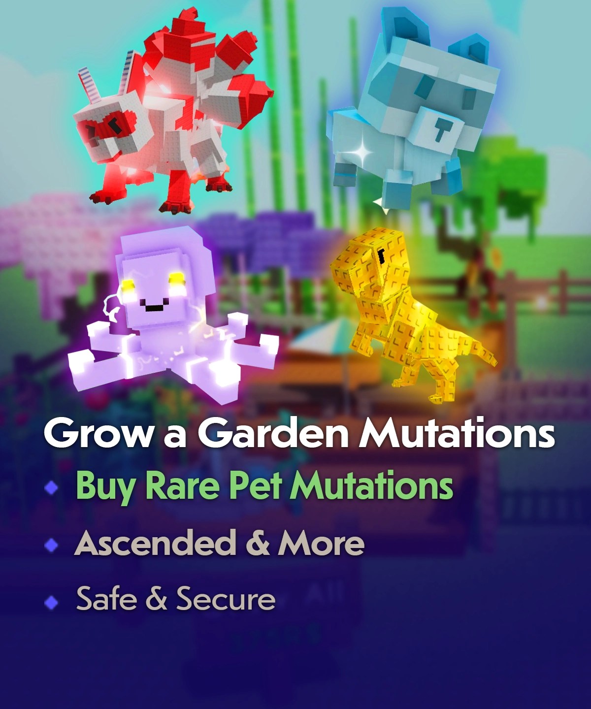 Buy Grow a Garden Mutations for Rare Pets including Ascended, Rainbow, Shiny, and more! Safe, secure, and best prices guaranteed on all Roblox items.