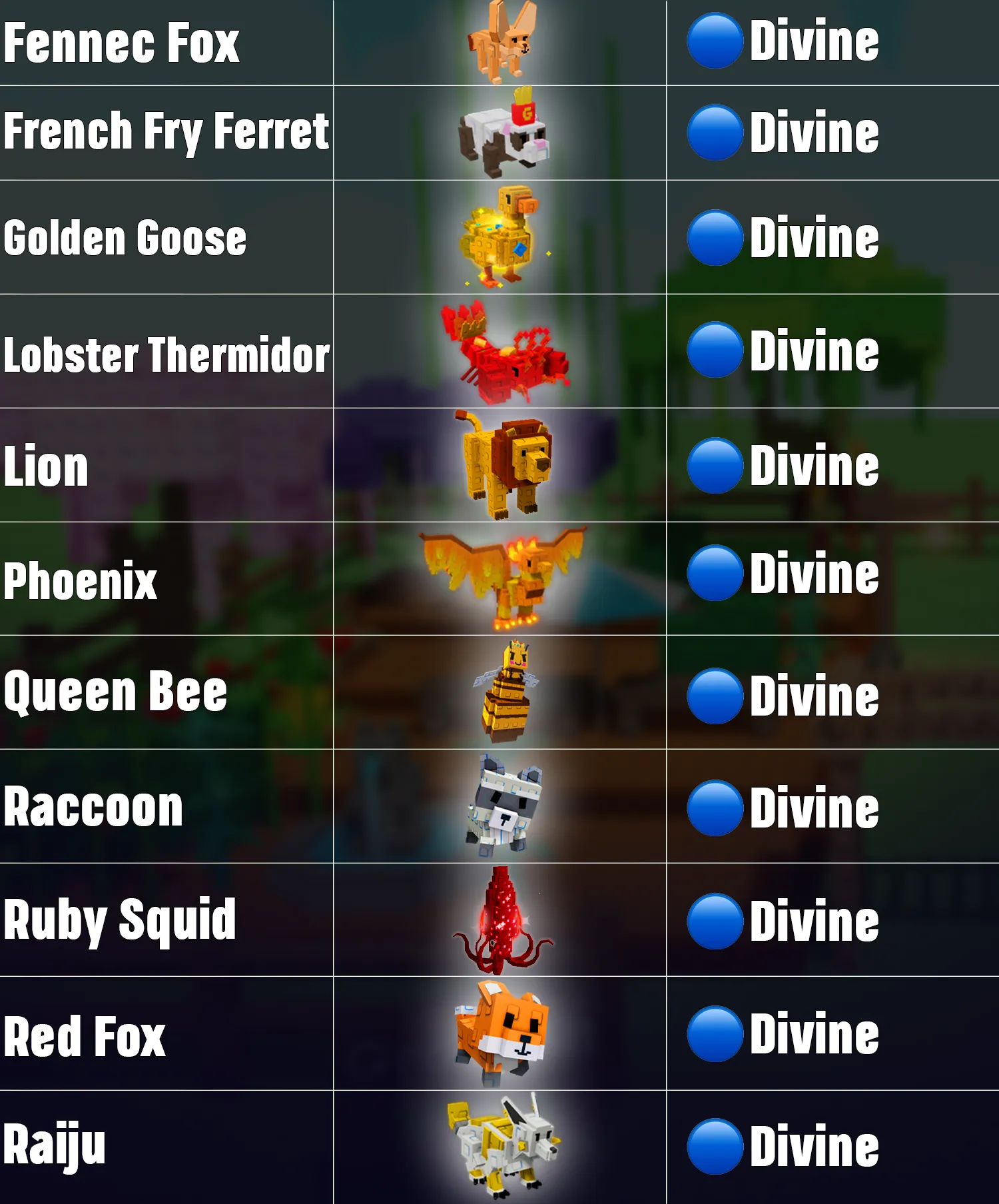 - Divine Pets are the highest tier in the game. Most Divine pets are premium versions of Legendary or Mythic pets with upgraded stats or combined abilities.