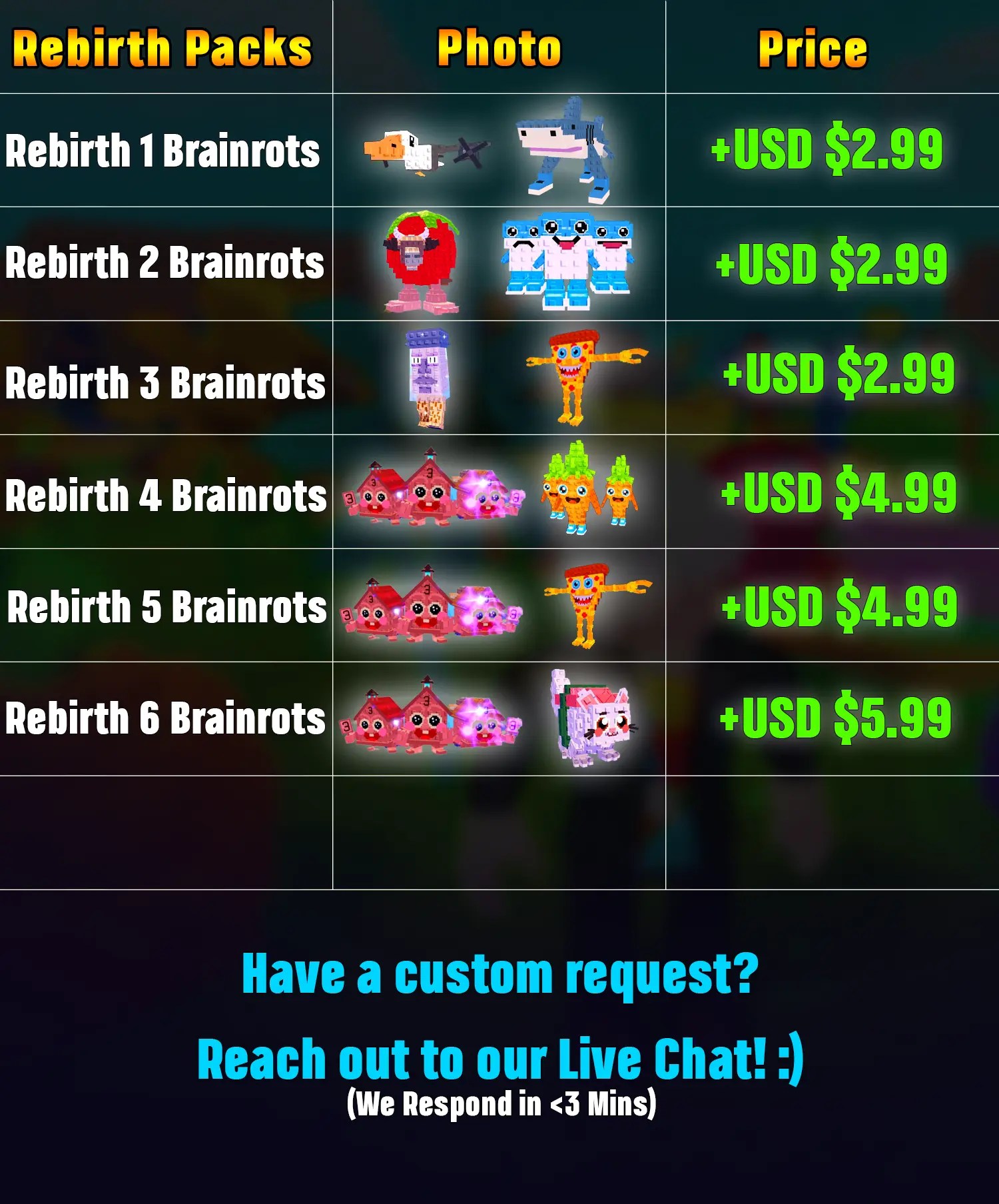 Buy Plants vs Brainrots Rebirth Service and complete Rebirths 1-4 in under 20 minutes! Safe, secure, and guaranteed lowest prices on all exclusive items.