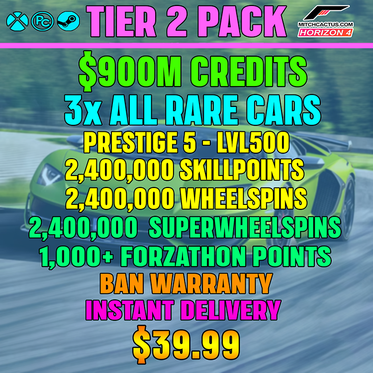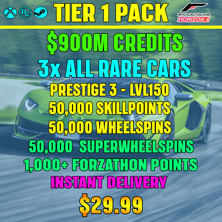 Our Forza Horizon 4 Modded Accounts are for Xbox, Windows & Steam. We provide three different tiers’ of items, each containing a different array of items, delivered to you instantly!