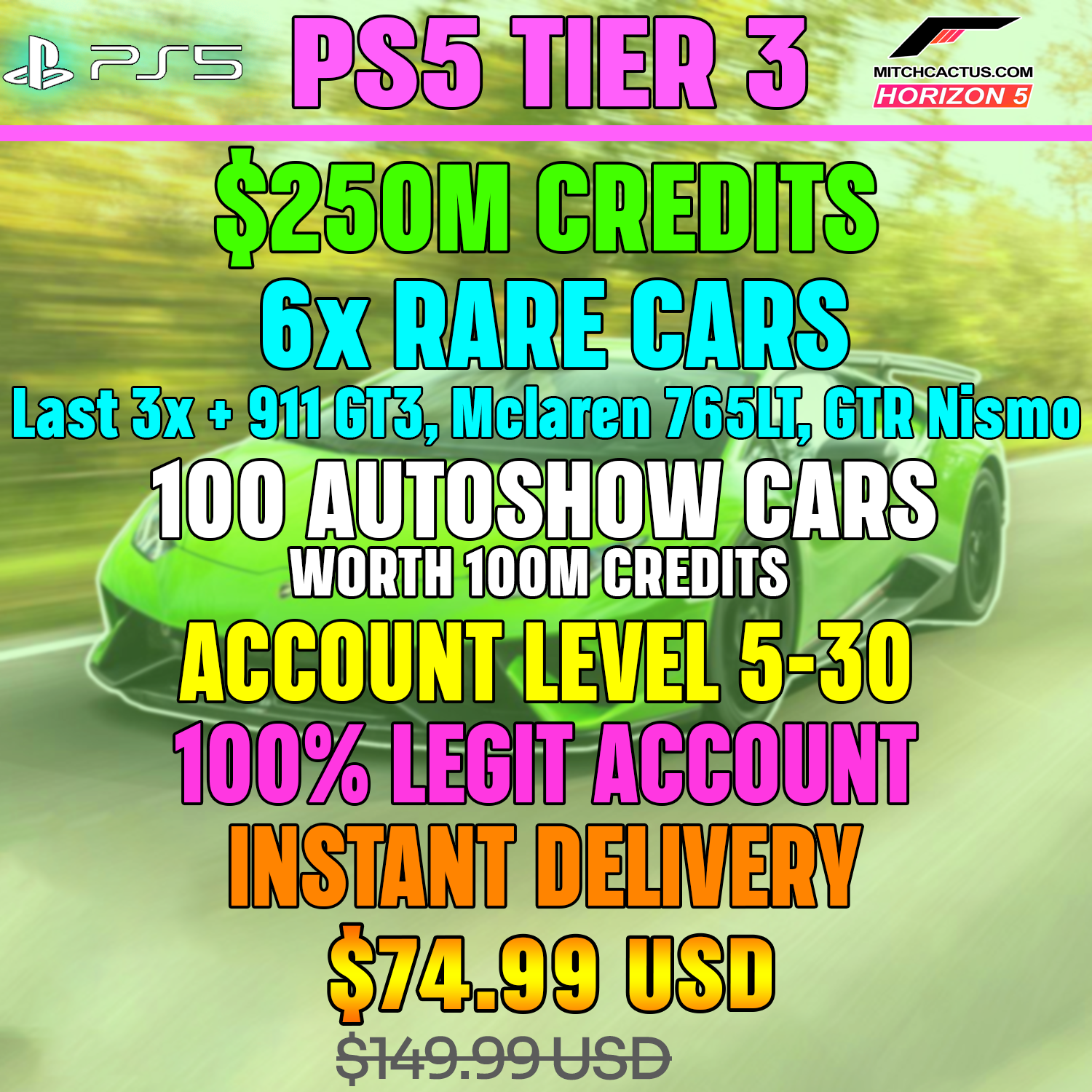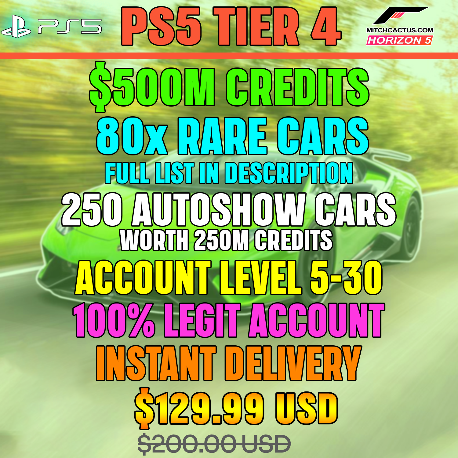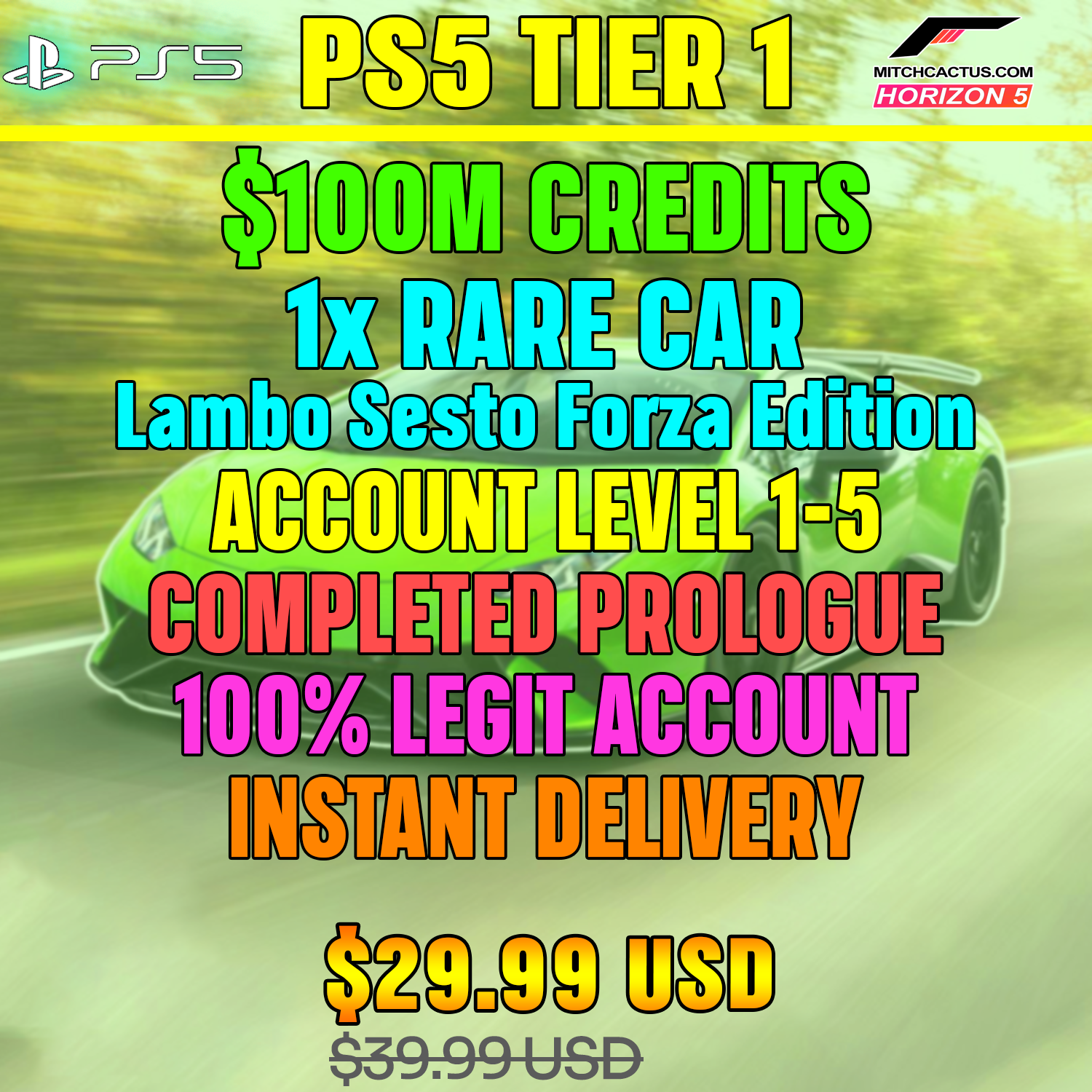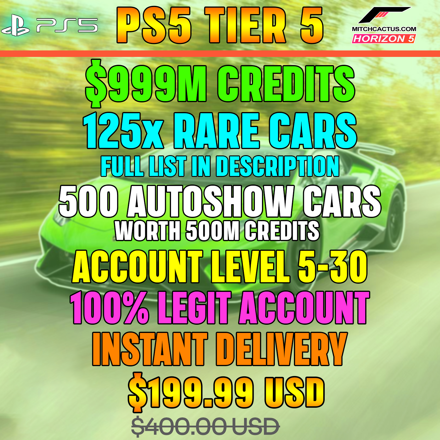 PS5: Forza Horizon 5 PS5 Modded Accounts are delivered as a PSN Email and Password which can be added as a PSN profile.