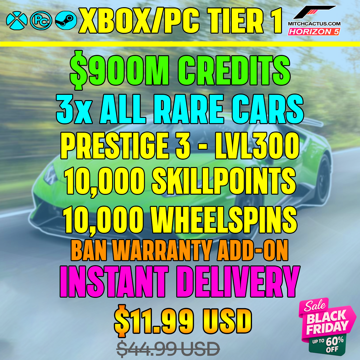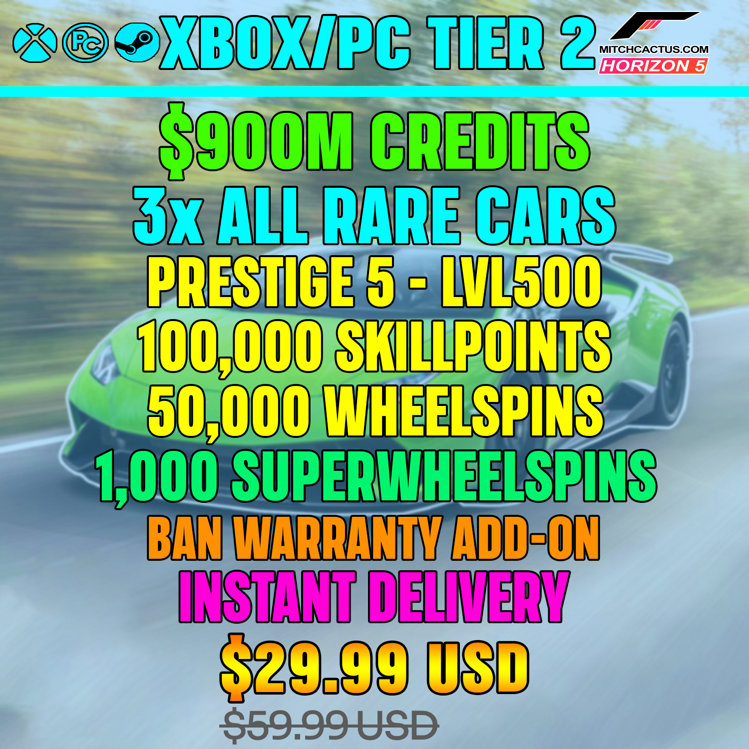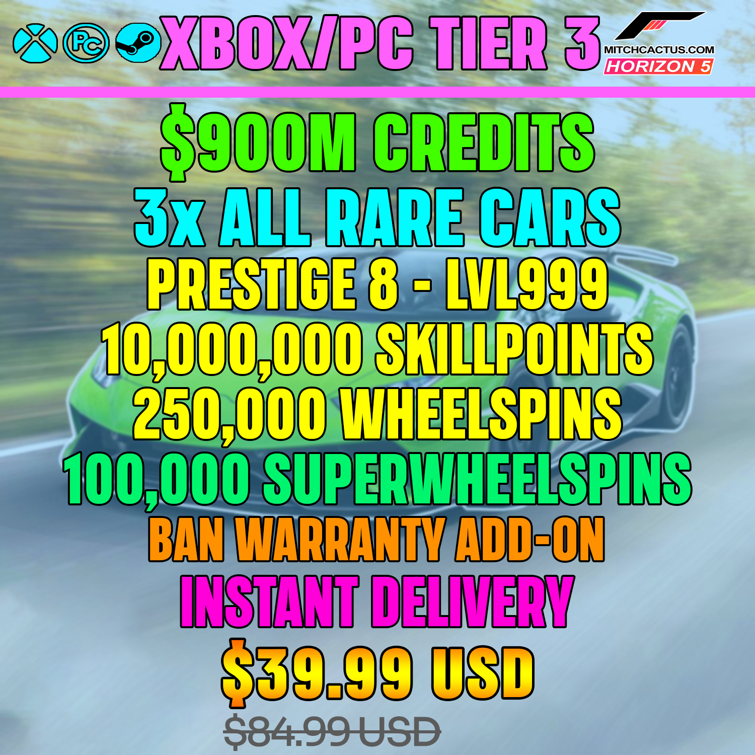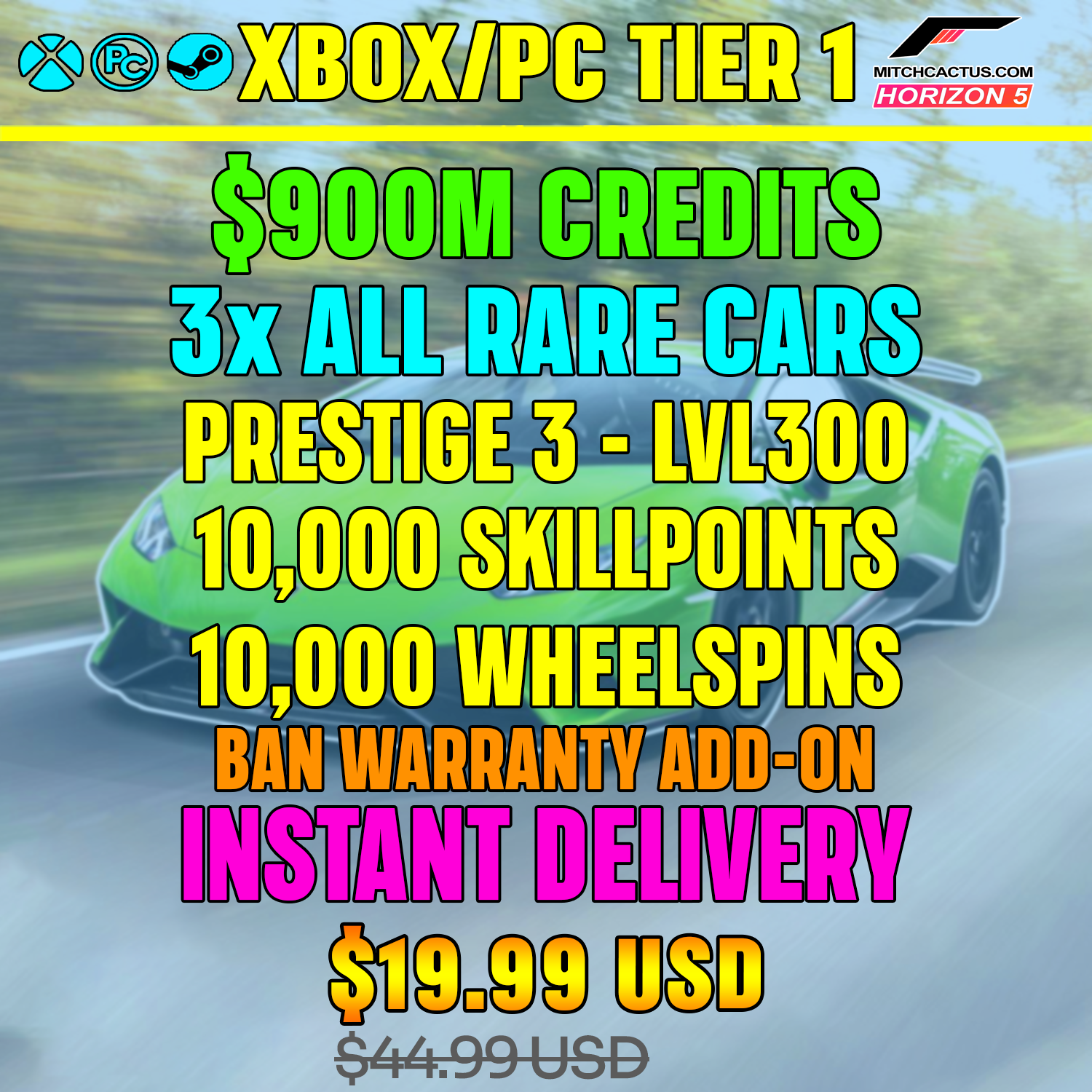 Buy Forza Horizon 5 Modded Accounts from MitchCactus and receive an account with the following contents: