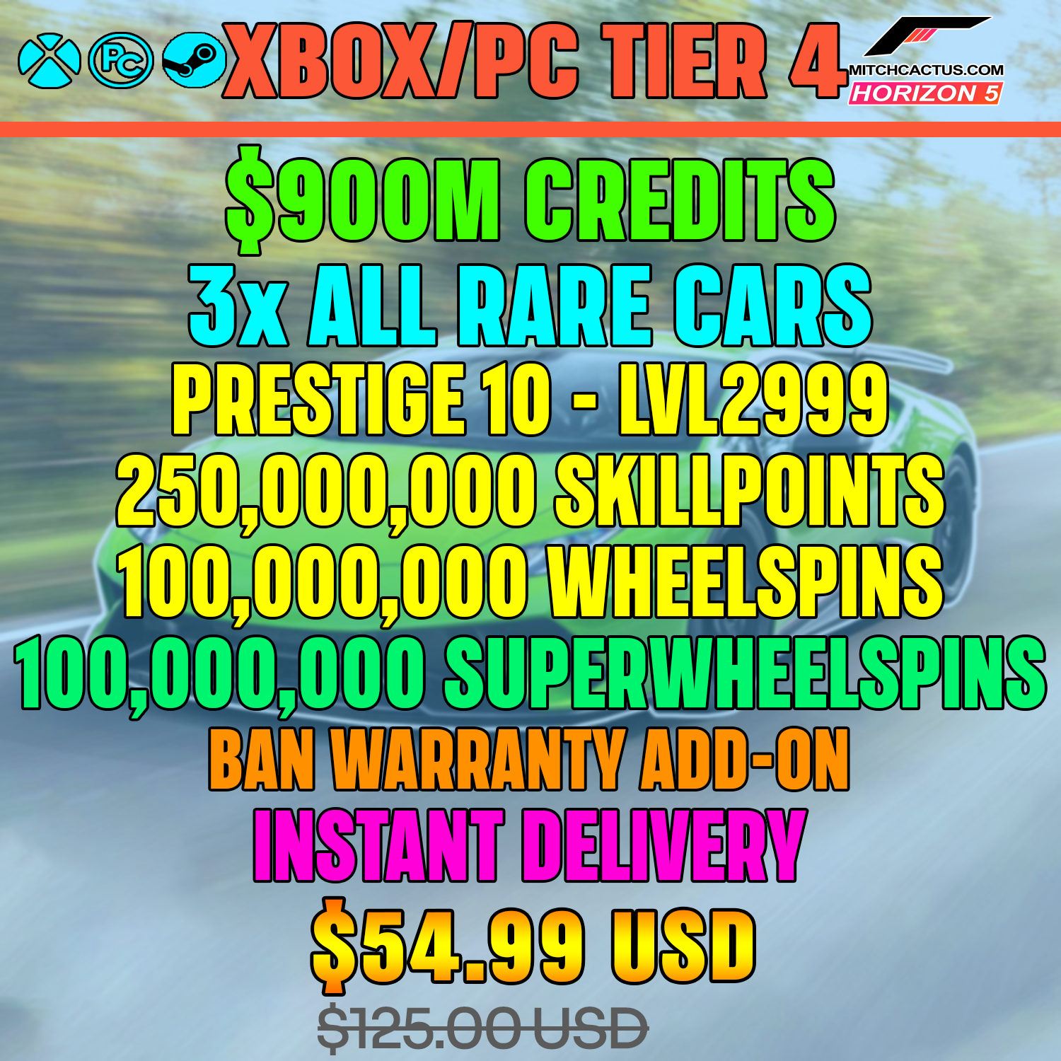 Not to mention, our 24/7 Customer Support in our live chat are here to help! Furthermore, FH5 Modded Accounts are compatible with all versions of Xbox. This includes Xbox One, Xbox One X/S, Xbox Series S/X.